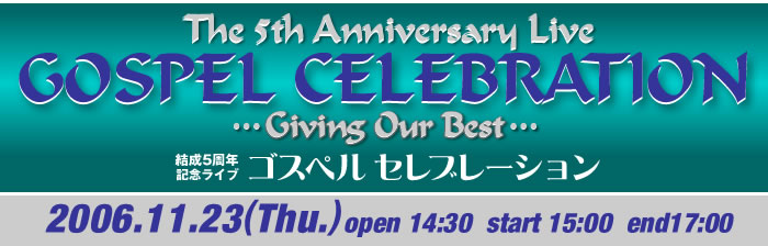 2001年に結成された神戸・明石・稲美・加古川を拠点に活動しているゴスペルクワイア。 ディレクター田中武の指導のもと構成メンバーは年齢層も幅広く100名を越える。 黒人霊歌・トラディショナルゴスペル・コンテンポラリーゴスペル・日本語曲までレパートリーは幅広い。 “Shine The Light”を今年度のテーマに、 ホール・教会・ウェディング・市民イベント、各種イベント等、積極的に活動を展開している。 2004年にはその活動が情報誌“大人のウォーカー”(角川書店)にも取り上げられた。 ゴスペルクリスマスフェスタ2004では世界的に活躍中のシンガー Eyvonne Williams と共演。 2005年2月NHK神戸放送会館にて開催されたトアロード市民コンサートの模様は、 ラジオ第1(全国エリア)、FM(関西エリア)、TVニュースにて放映された。 「魂の叫び、祈りの声、望みなき者に希望を与えるゴスペルを ひとりでも多くの方と分かち合いたい!!」そんなスピリットで歌い続けている。 |