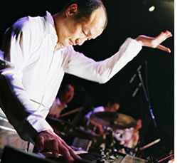笠松学(ピアノ&ハモンドオルガン) 大阪出身。幼少期にビートルズに強い影響を受け音楽に目覚める。ゴスペル、ソウル、ブルース、ジャズ、ファンク等様々なジャンルで活動中。ハモンドオルガン&ピアノを通して、小坂忠、桑名正博、もんたよしのり、Ronnie Rucker、Spiritual Voices、Eyvonne Williams 等とライヴ、レコーディングを共にする。アグレッシブなプレーで魅了する。自己がリードするゴスペルクワイア BIG EASY のCDアルバム“Oh, Shiny Day”を発表。演奏、作曲、編曲、プロデュースを担当。 |