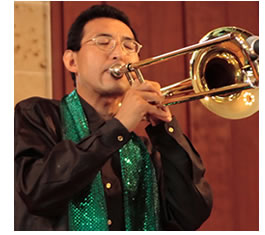 亀井玲司 神戸出身。 クラシックからジャズ、ポップまで吹きこなすマルチ奏者。 四半世紀(25年)以上のキャリアをもち、 その活動は国内にとどまらず海外へも広がり、 ソロ・コンサートツアーを多数開催、精力的に活動中。 小坂忠、岩渕まこと、Ron Kenoly、Terry Woodward等、 数多くのアーティストやバンドと共演。 滋賀トロンボーン・フェスティバル大賞等、受賞歴多数。 グレイス・サウンド・プロダクション代表。 ユーオーディア管弦楽団トロンボーン奏者。 グレイス・ブラス・アンサンブル主宰。 関西トロンボーン協会会員。 |